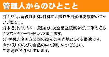 ・ホタル ・花見キャンプ ・竹の子堀(有料) ・原木しいたけ狩り(有料)など